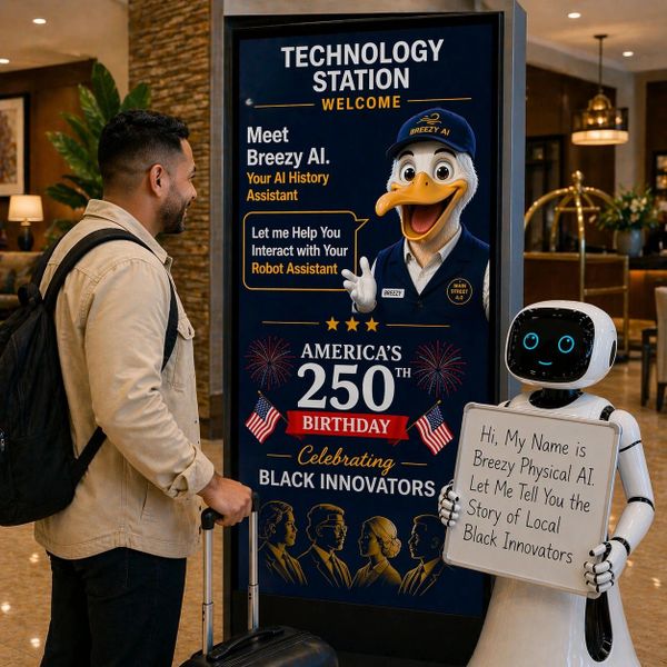 These stories come to life through immersive technology stations located in retail spaces, restaurants, hotels, senior living communities, hospitals, malls, and community events. Visitors can explore the experiences through VR headsets, AR campaigns on their phones, Breezy AI conversations, or interactive robots that guide short tours.