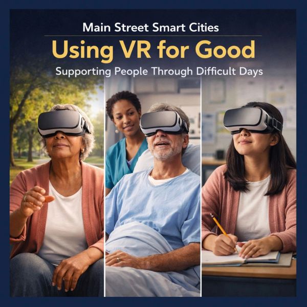 The Main Street Smart Cities VR for Good Libraries is designed to help seniors feel seen, connected, and empowered through immersive 360-degree experiences. By capturing local places—parks, neighborhoods, faith centers, historic sites, even beloved family events—and turning them into immersive videos, the library gives seniors a way to stay emotionally close to the people and places that matter. It also supports mental sharpness, curiosity, and a deeper sense of belonging, especially for those isolated by health, mobility, or distance.